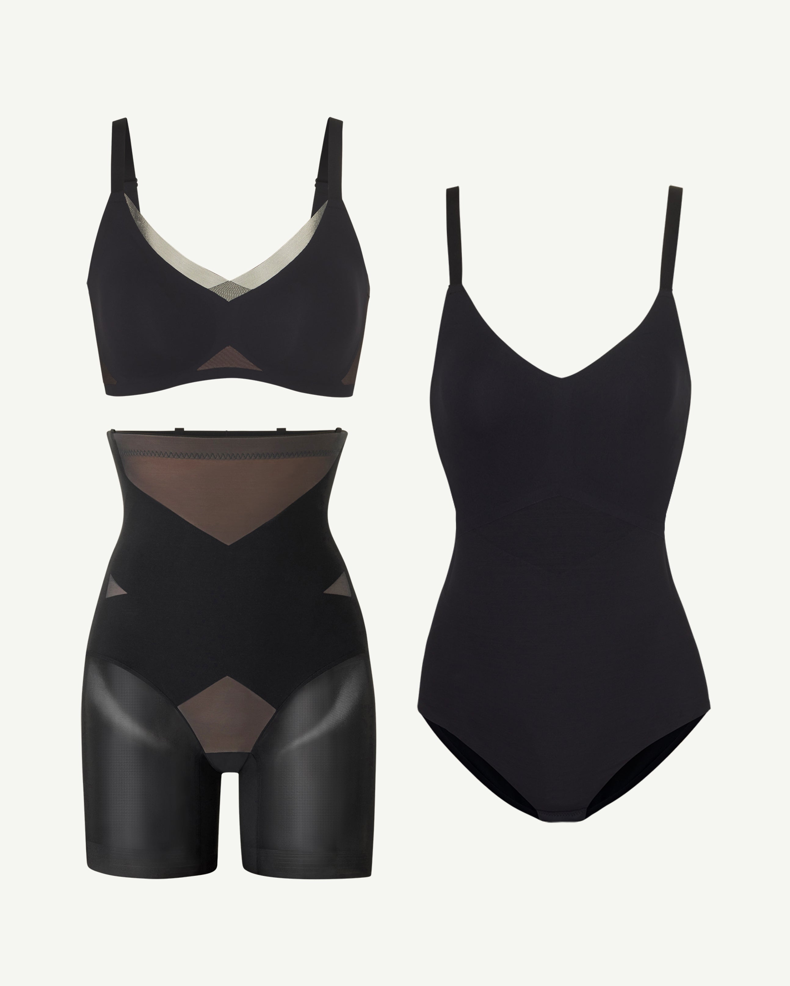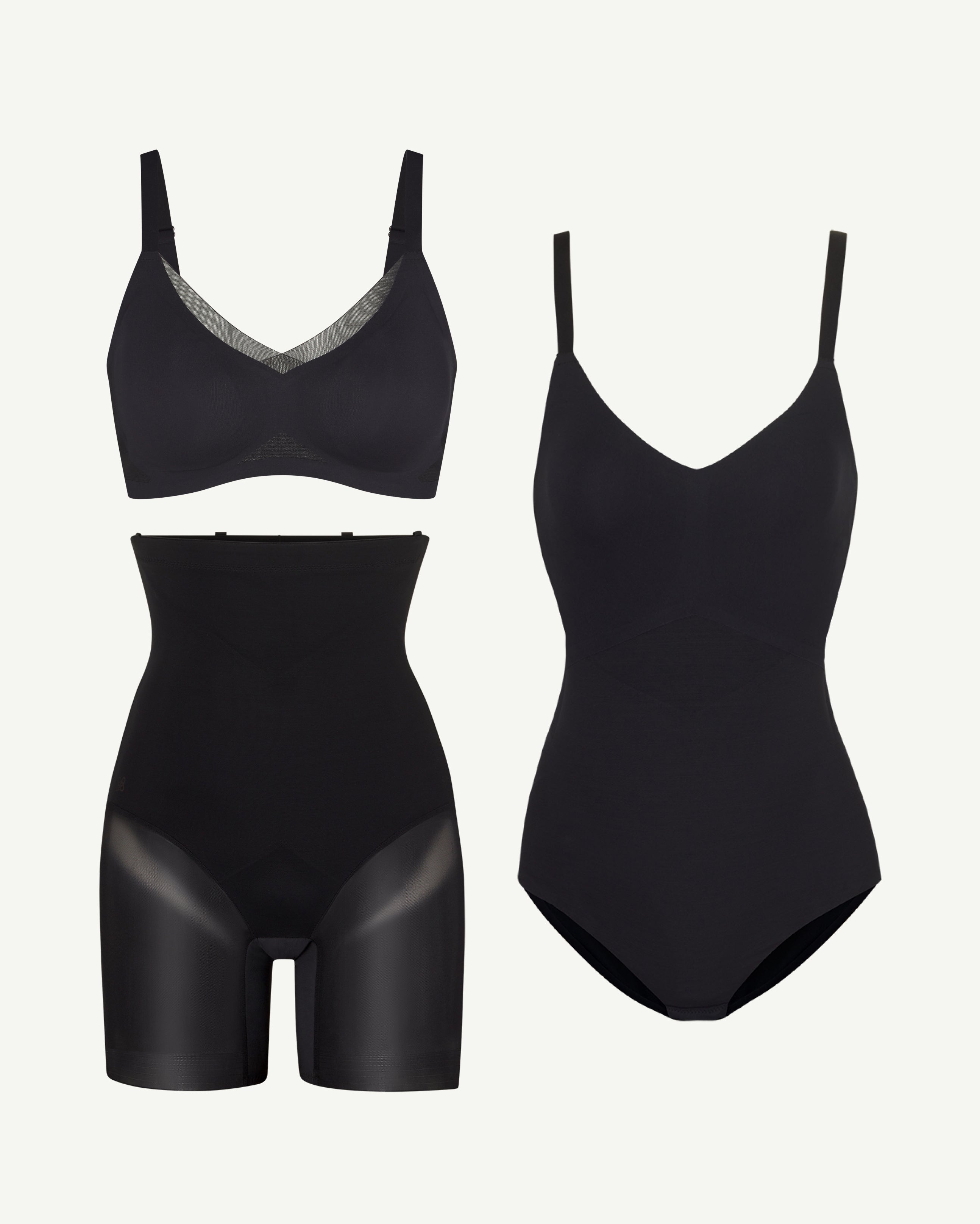 This Bundle includes Honeylove’s CrossOver Bra. SuperPower Short. and Cami Bodysuit. Purchase the Honeylove Starter Pack Bundle and save.