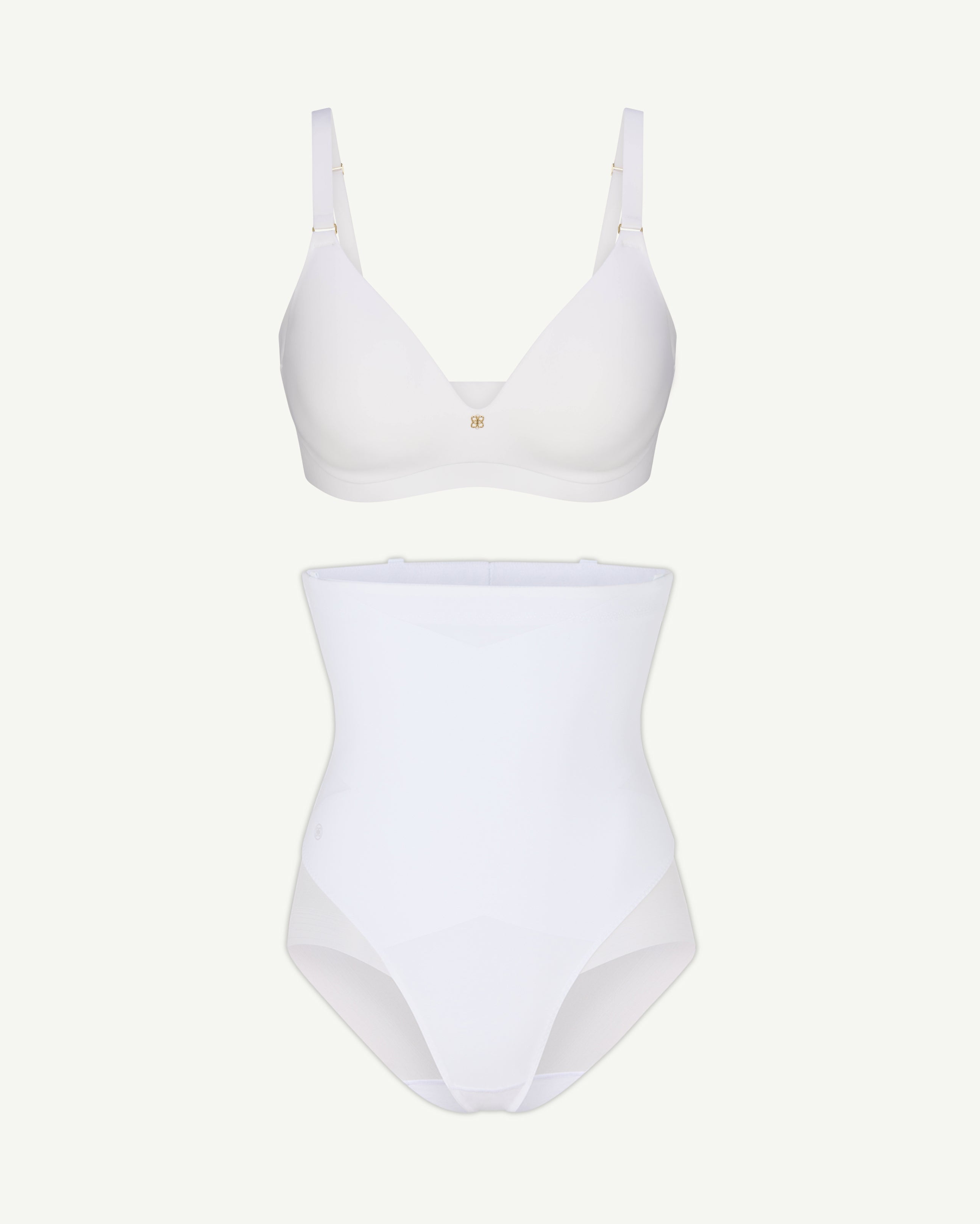 This bundle includes Honeylove’s CloudEmbrace Bra and SuperPower Brief. Buy the Sculpt + Support Duo and save.