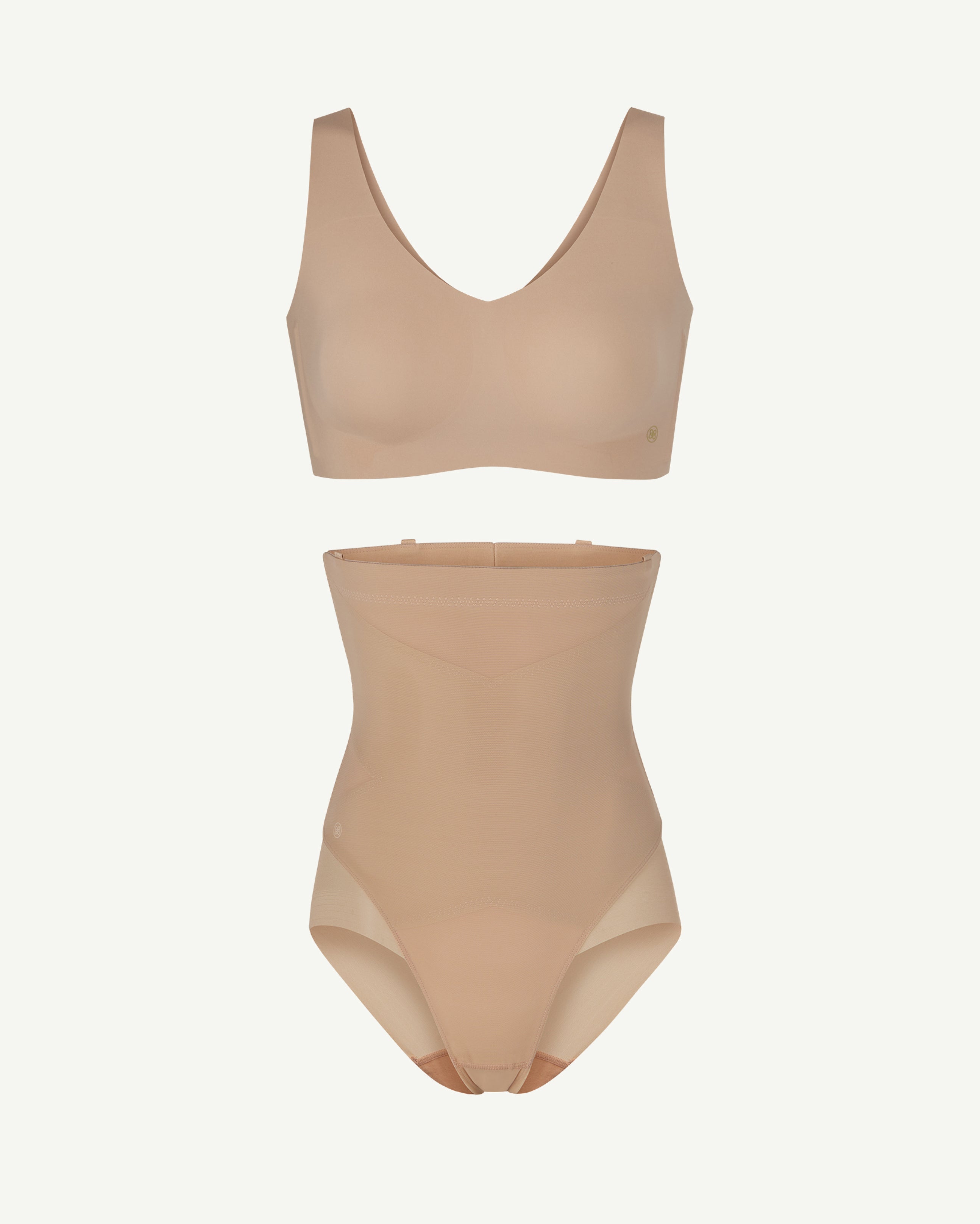 This bundle includes Honeylove’s SoftForm Bra and SuperPower Brief. Buy the SoftForm Bra + SuperPower Brief Bundle and save.