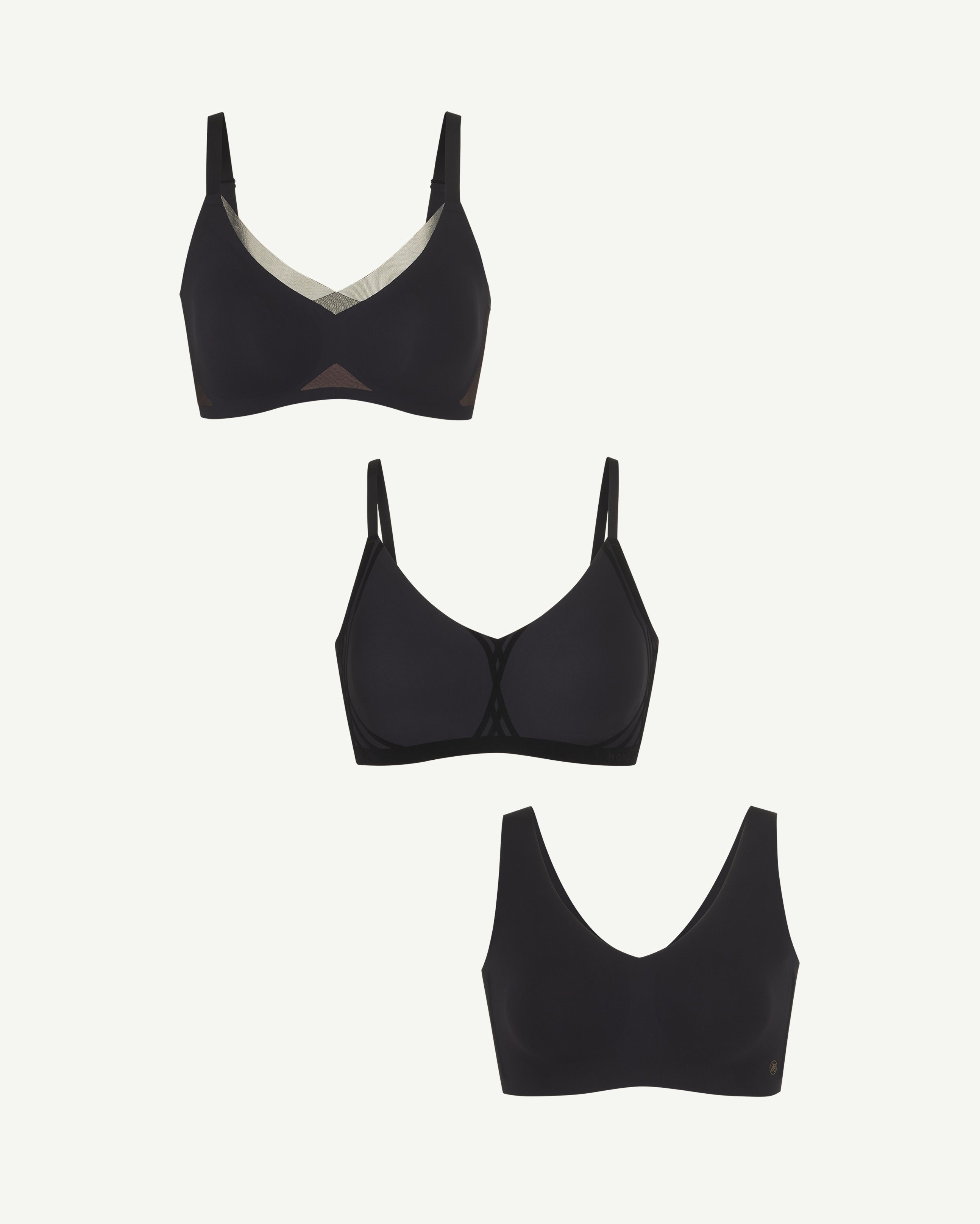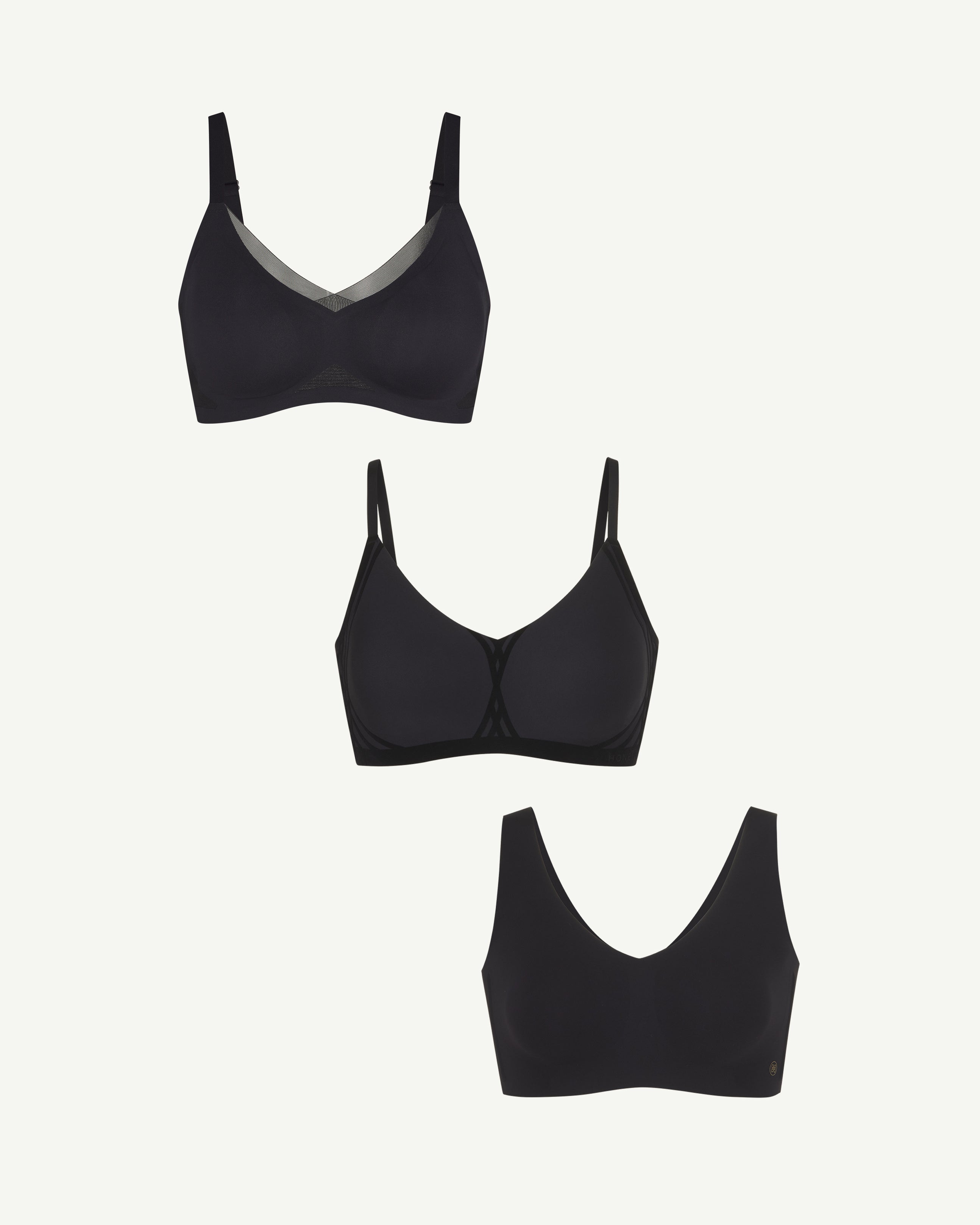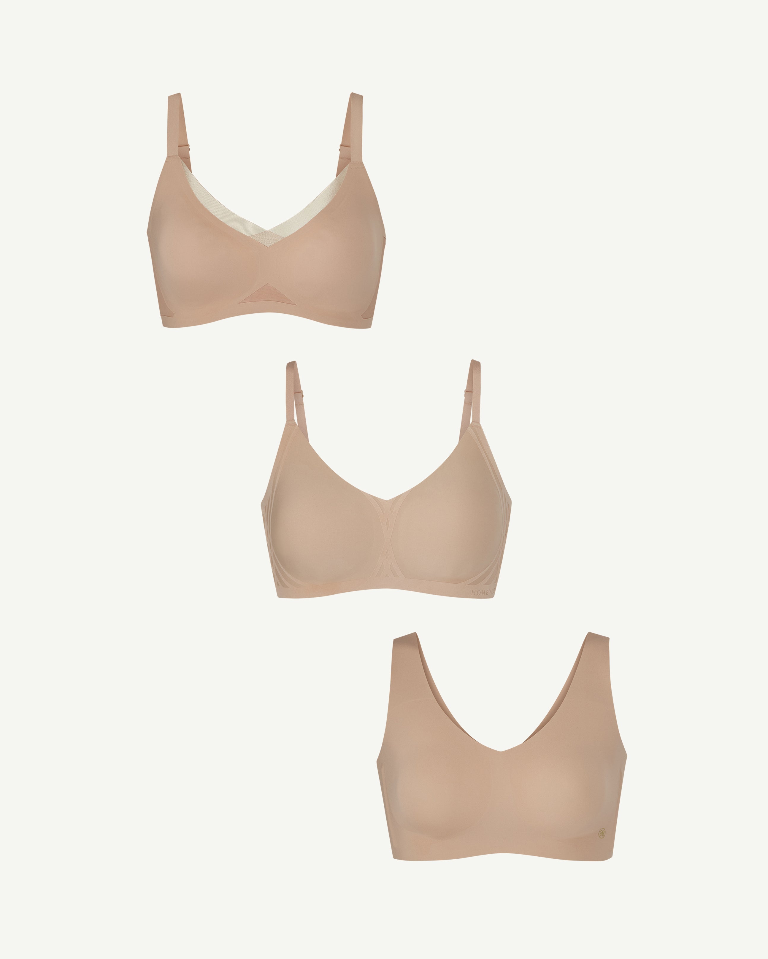 This bundle includes Honeylove’s CrossOver Bra. Silhouette Bra. and SoftForm Bra. Buy the Three Bra Bundle and save.