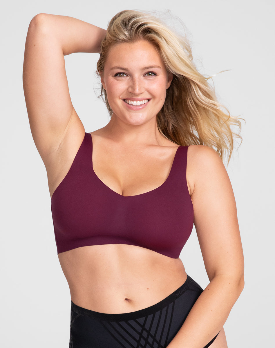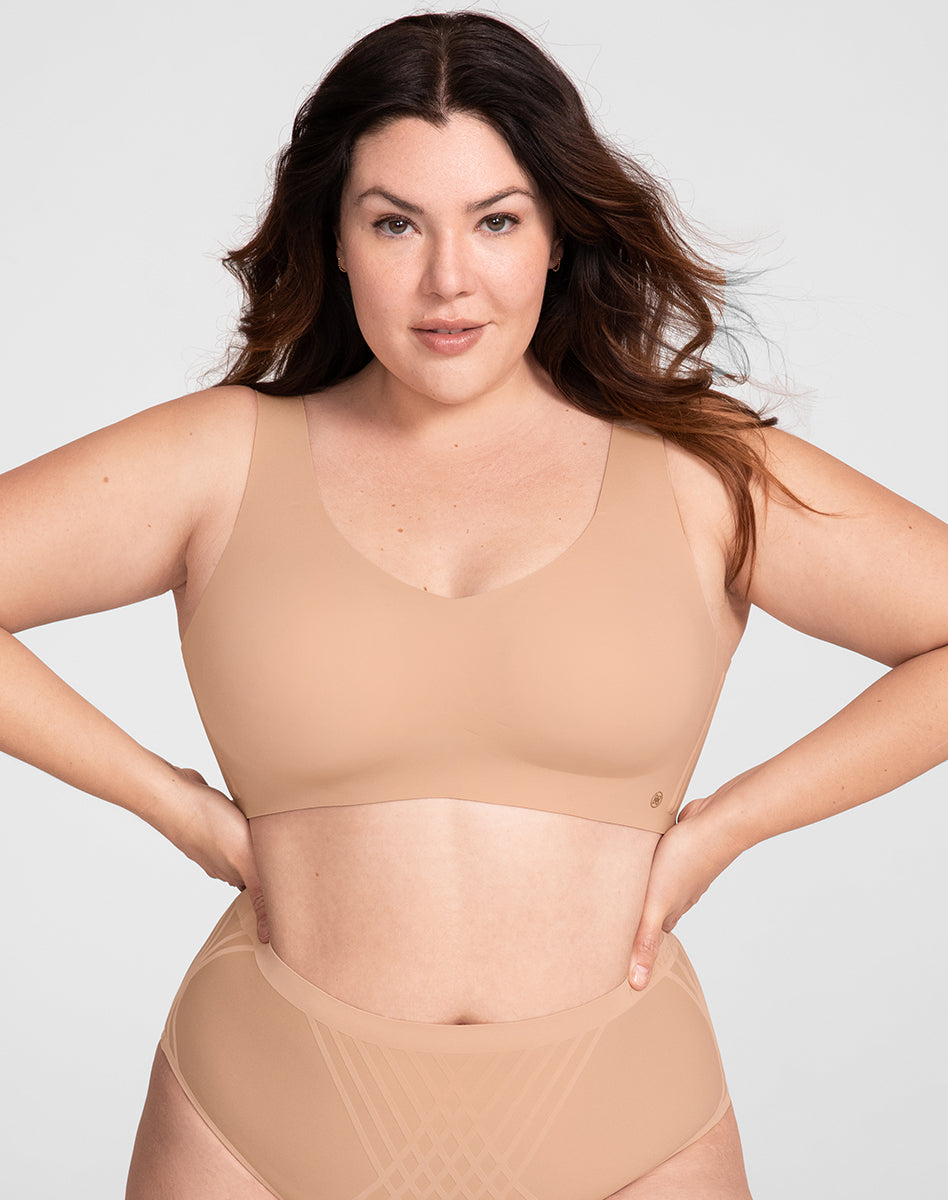 This wireless bra features a bonded cradle that replaces underwire for maximum comfort and support. Premium brushed lining is feather-soft against skin. The bra’s hardware-free design lies invisibly underneath tight clothing. Raw cut. seamless bra construction eliminates any chance of bulging.